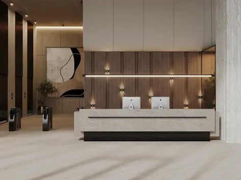 An integrated project designed in harmony with the Salmani style and according to international standards, providing a functional environment where luxury and privacy converge, along with spaces that meet the administrative needs of employees. The project features executive offices and modern, contemporary workspaces, distinguished by high-quality, modern interior designs and precise finishes equipped with all comforts. The high ceilings in the main areas allow natural light to enter, complemented by full-height glass facades that maximize daylight.