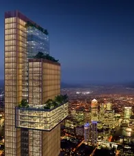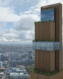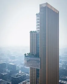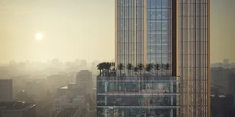 41 floors + 6 basement levels 614 parking spaces Commercial exhibition areas Waterfalls and fountains Outdoor seating areas Green spaces Stunning exterior and interior views